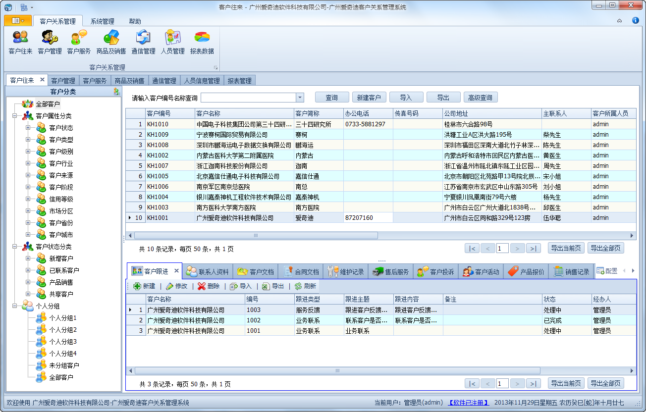 廣州愛奇迪客戶關(guān)系管理系統(tǒng),是一款專業(yè)的客戶關(guān)系管理軟件(CRM管理系統(tǒng)),軟件以客戶為中心,把科學(xué)的管理與信息技術(shù)結(jié)合起來, 實(shí)現(xiàn)市場(chǎng)、銷售、服務(wù)協(xié)同工作統(tǒng)一管理。幫助企業(yè)規(guī)范業(yè)務(wù)流程、提高客戶挖掘能力和客戶服務(wù)質(zhì)量、有效管理客戶資源、提高銷售成功率,達(dá)到全面提升企業(yè)核心競(jìng)爭(zhēng)力的目的。