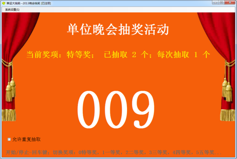 2、使用數(shù)字鍵進(jìn)行切換獎(jiǎng)項(xiàng),0為特等獎(jiǎng),1為一等獎(jiǎng),2為二等獎(jiǎng),如此類推;