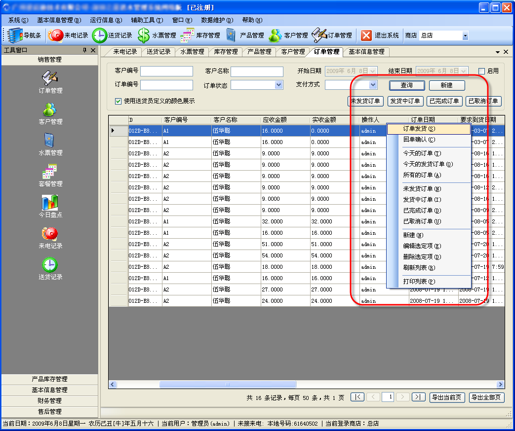 軟件主要功能有來電顯示及電話錄音、客戶管理、訂單管理、水票管理、權(quán)限管理、送水工管理、庫存管理、財(cái)務(wù)管理、售后管理、報(bào)表打印等眾多實(shí)用有效的的功能。